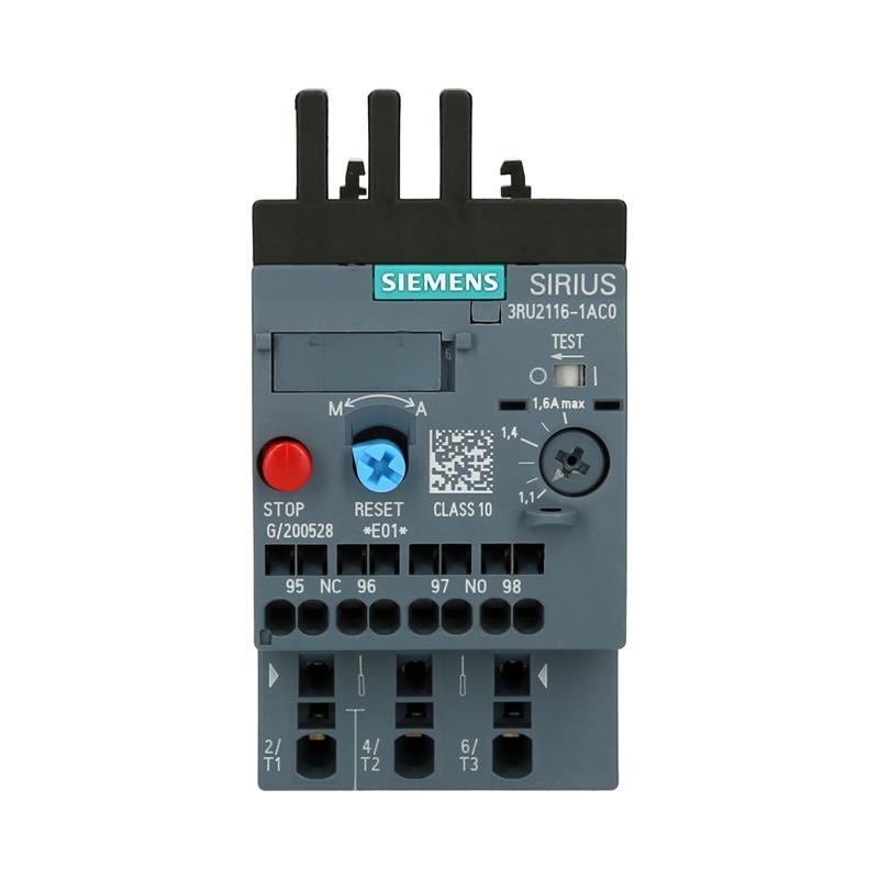 Siemens’in 3RU2116-1AC0 termal aşırı yük rölesi, ana devrede akıma bağlı aşırı yük koruması için kullanılır. SIRIUS’un 3RU2116-1AC0 aşırı yük rölesi, 1,1–1,6 A ayar aralığı sayesinde 0,55 kW’a kadar motorlar ve sistemler için optimum koruma sağlar. Yardımcı kontak olarak bir normalde kapalı kontak ve bir normalde açık kontak mevcuttur. S00 boyutu ve pratik yaylı bağlantısı sayesinde 3RU2116-1AC0 termal aşırı yük rölesi, yük besleyiciye mükemmel bir şekilde entegre edilebilir. İzleme röleleri elektrik şalt teknolojisinin tüm alanlarında kullanılmaktadır.