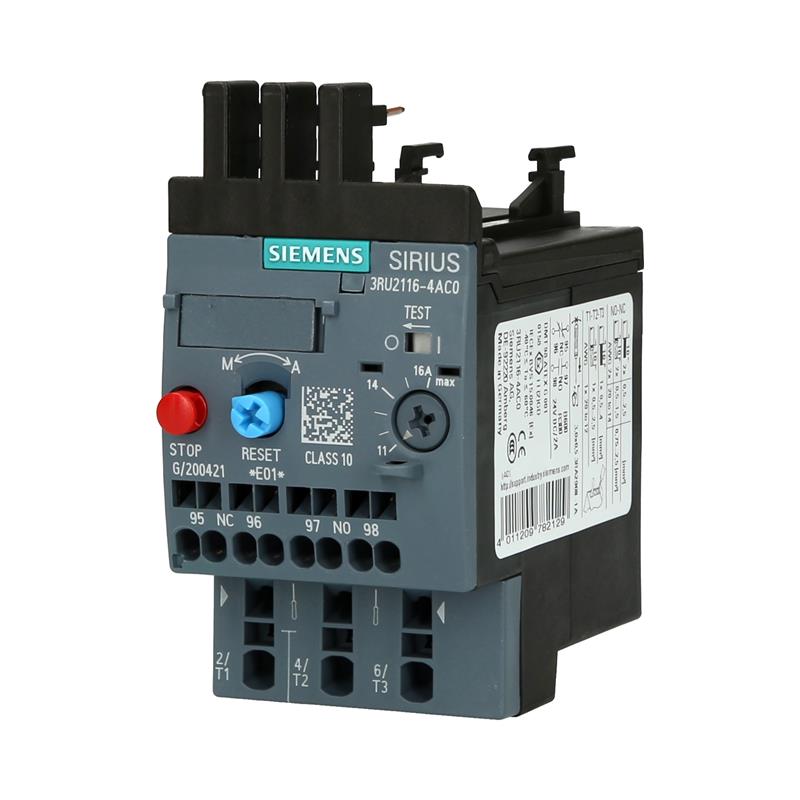 Siemens’in 3RU2116-4AC0 termal aşırı yük rölesi, ana devrede akıma bağlı aşırı yük koruması için kullanılır. SIRIUS’un 3RU2116-4AC0 aşırı yük rölesi, 11–16 A ayar aralığı sayesinde 7,5 kW’a kadar motorlar ve sistemler için optimum koruma sağlar. Yardımcı kontak olarak bir normalde kapalı kontak ve bir normalde açık kontak mevcuttur. S00 boyutu ve pratik yaylı bağlantısı sayesinde 3RU2116-4AC0 termal aşırı yük rölesi, yük besleyiciye mükemmel bir şekilde entegre edilebilir. İzleme röleleri elektrik şalt teknolojisinin tüm alanlarında kullanılmaktadır.