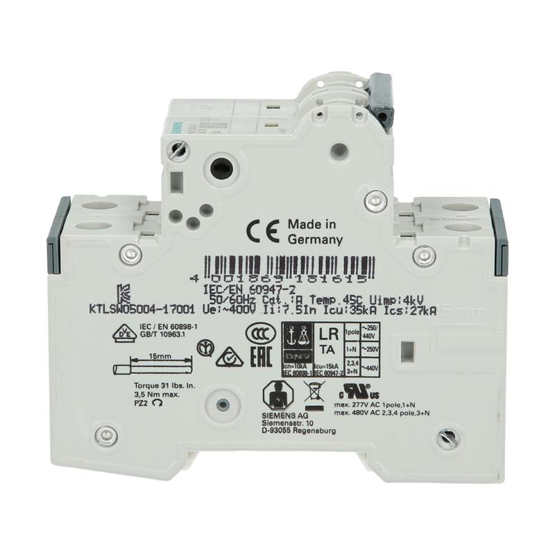 Siemens’in açma karakteristiğine sahip 5SY4204-7 otomatik devre kesici, 230/400 V besleme gerilimi ve 4 A akım durumunda güvenlik sağlar. Kısa devre akımı durumunda kesme kapasitesi 10’dur. KA. 2 kutuplu 5SY4204-7 otomatik devre kesicinin beslemesi üstten veya alttan olabilir. Geniş kablolama alanı, telin terminale rahatça beslenmesini garanti eder. 5SY4 serisinden 5SY4204-7 otomatik devre kesici, binalardaki sistemlerin korunmasında ve endüstriyel uygulamalarda kullanılır. Bu seri, sistemlerin bağlantısını kesmek ve yalıtmak için ana anahtar olarak kullanılabilir. Endüstriyel uygulamalarda ve tesis mühendisliğinde, kontrol anahtarları gibi faydalı eklenti bileşenlere sahip otomatik devre kesiciler eklenebilir.