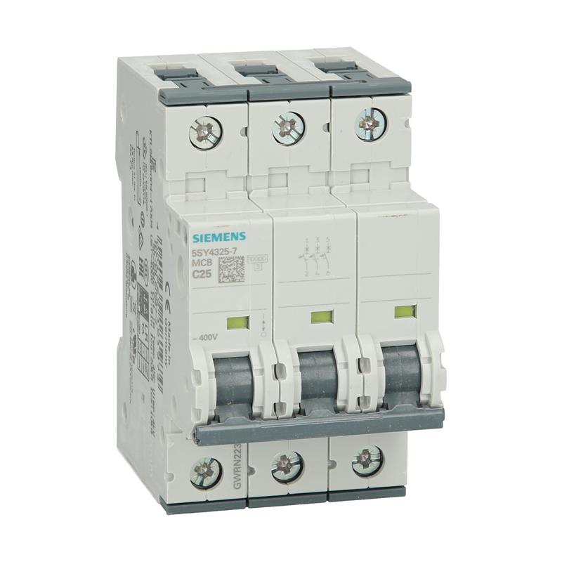 Siemens’in açma karakteristiğine sahip 5SY4325-7 otomatik devre kesici, 230/400 V besleme voltajı ve 25 A akım durumunda güvenlik sağlar. Kısa devre akımı durumunda kesme kapasitesi 10’dur. KA. 3 kutuplu 5SY4325-7 otomatik devre kesicinin beslemesi üstten veya alttan olabilir. Geniş kablolama alanı, telin terminale rahatça beslenmesini garanti eder. 5SY4 serisinden 5SY4325-7 otomatik devre kesici, binalardaki sistemlerin korunmasında ve endüstriyel uygulamalarda kullanılır. Bu seri, sistemlerin bağlantısını kesmek ve yalıtmak için ana anahtar olarak kullanılabilir. Endüstriyel uygulamalarda ve tesis mühendisliğinde, kontrol anahtarları gibi faydalı eklenti bileşenlere sahip otomatik devre kesiciler eklenebilir.