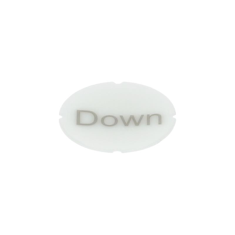 Siemens’in SIRIUS ACT serisinin “Aşağı” yazılı şeffaf 3SU1900-0AB71-0DM0 yazı plakası, SIRIUS ACT ışıklı butonları etiketlemek için kullanılır.