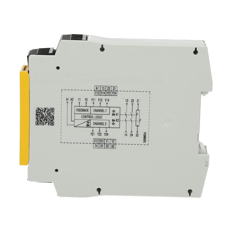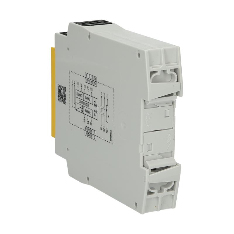Wieland’ın R1.188.0530.1 – SNZ4052K-A AC/DC 24V (B) güvenlik rölesi, iki elli kontrol masalarını izlemek için kullanılır . EN 574 Tip IIIC temel modülünde, akım yollarını etkinleştiren üç açık kontağın yanı sıra bir yardımcı kontak bulunur ve iki kanal üzerinden kontrol edilebilir. Üç yeşil LED’li işlevsel bir ekran, çapraz kablo izleme, 2 x açma/kapama başlatma kilidi ve eşzamanlı izleme sunar. 24 V AC/DC besleme gerilimine sahip R1.188.0530.1 – SNZ4052K-A AC/DC 24V (B) emniyet rölesi, geçmeli vidalı terminaller aracılığıyla bağlanır ve bir DIN35 rayına monte edilebilir.