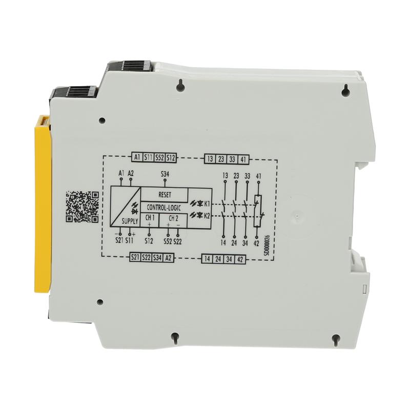 Wieland’ın R1.188.3250.0 – SNA4043KM-A AC/ DC 24V 50-60HZ (A) güvenlik rölesi aşağıdakiler için kullanılır: örneğin asansörler, brülörler ve ışık perdelerindeki güvenlikle ilgili devrelerin izlenmesi. Temel modül, akım yollarını etkinleştiren üç açık kontağın yanı sıra bir yardımcı kontağa sahiptir ve tek bir kanal veya iki kanal üzerinden kontrol edilebilir. Üç yeşil LED’li, çapraz kablo izlemeli ve otomatik Sıfırlamalı işlevsel bir ekran sunar. 24 V AC/DC (50 – 60 Hz) besleme gerilimine sahip R1.188.3250.0 – SNA4043KM-A AC/ DC 24V 50-60HZ (A) emniyet rölesi geçmeli vidalı terminaller aracılığıyla bağlanır ve monte edilebilir DIN35 rayında.