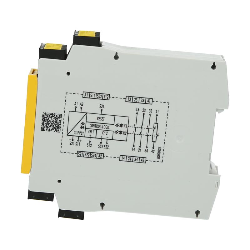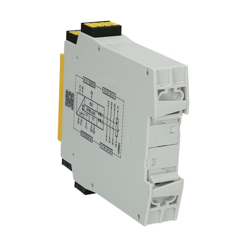 Wieland’ın R1.188.3400.0 – SNA4043KM-C AC/DC 24V 50-60HZ (A) güvenlik rölesi aşağıdakiler için kullanılır: örneğin asansörler, brülörler ve ışık perdelerindeki güvenlikle ilgili devrelerin izlenmesi. Temel modül, akım yollarını etkinleştiren üç açık kontağın yanı sıra bir yardımcı kontağa sahiptir ve tek bir kanal veya iki kanal üzerinden kontrol edilebilir. Üç yeşil LED’li, çapraz kablo izlemeli ve otomatik Sıfırlamalı işlevsel bir ekran sunar. 24 V AC/DC (50 – 60 Hz) besleme gerilimine sahip R1.188.3400.0 – SNA4043KM-C AC/DC 24V 50-60HZ (A) emniyet rölesi geçmeli yaylı kelepçelerle bağlanır ve monte edilebilir DIN35 rayında.