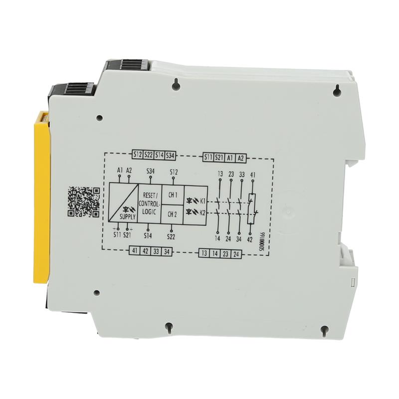 Wieland’ın R1.188.3580.0 – SNO 4083KM-A 1,5s DC 24V güvenlik rölesi, örneğin asansörlerde güvenlikle ilgili devrelerin izlenmesi için kullanılır ve brülörler. Temel modül, akım yollarını etkinleştiren üç açık kontağın yanı sıra bir yardımcı kontağa sahiptir ve tek bir kanal veya iki kanal üzerinden kontrol edilebilir. Üç yeşil LED’li, çapraz kablolu izleme, otomatik Sıfırlama ve senkronizasyon süresi izleme (1,5s) ile işlevsel bir ekran sunar. 24 V DC besleme gerilimine sahip R1.188.3580.0 – SNO 4083KM-A 1,5s DC 24V emniyet rölesi, geçmeli vidalı terminaller aracılığıyla bağlanır ve bir DIN35 rayına monte edilebilir.