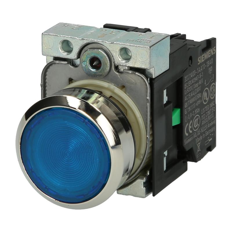 Siemens’in SIRIUS ACT 3SU1152-0AB50-1BA0 komple cihazı, mavi bir çalıştırma elemanına sahip aydınlatmalı bir buton, bir tutucu, bir LED elemanı (mavi) ve bir kontak elemanı (1 x) içerir HAYIR). Düğmenin montaj çapı 22,3 mm’dir ve parlak metalden yapılmış bir mahfazaya sahiptir ve kurulumu kolaydır. 24 V AC/DC besleme gerilimine sahip 3SU1152-0AB50-1BA0 butonlu komple cihaz, dünya çapında kullanıma yönelik uluslararası ilgili tüm standartları karşılar ve tüm endüstriyel sektörlerdeki uygulamalar için uygundur.