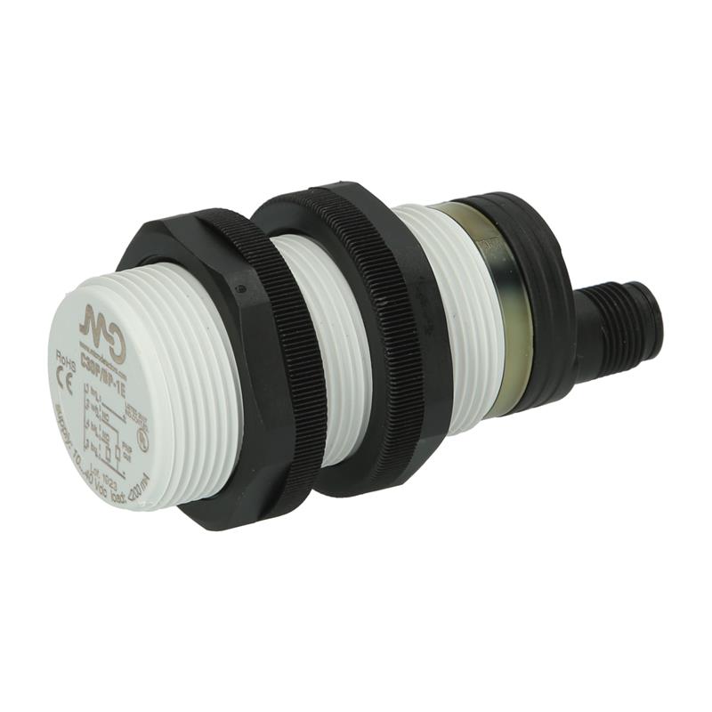 MD Mikro Dedektörlerin M30 x 1,5 plastik dişli ve 10-40 V DC çalışma voltajına sahip kapasitif sensörü C30P/BP-1E, normalde açık veya normalde kapalı olarak programlanabilir. çıkış fonksiyonu. Ankastre kurulumda algılama mesafesi 16 mm’dir. Kapasitif sensör C30P/BP-1E, bir M12 konektörü aracılığıyla bağlanır. Parazite karşı artırılmış bağışıklık ve IP67 koruma sınıfı sayesinde metallerin ve hemen hemen tüm plastik, cam, seramik, ahşap ve kağıdın tespiti kolaylıkla mümkündür.
