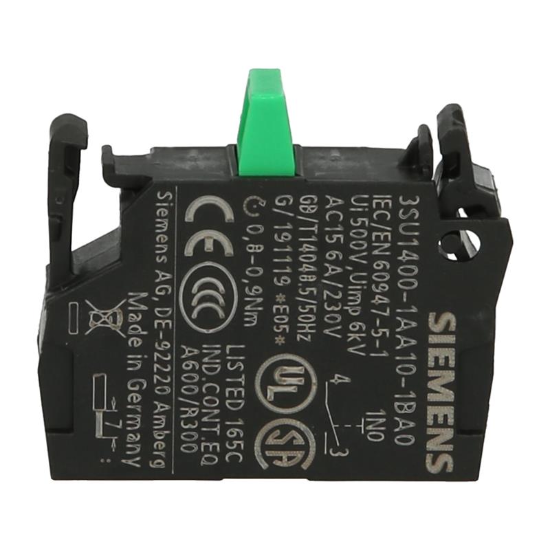 Siemens’in SIRIUS ACT serisinin ön montajına yönelik 3SU1400-1AA10-1BA0 kontak elemanı normalde açık bir kontağa sahiptir. Bağlantı vidalı terminaller aracılığıyla yapılır.