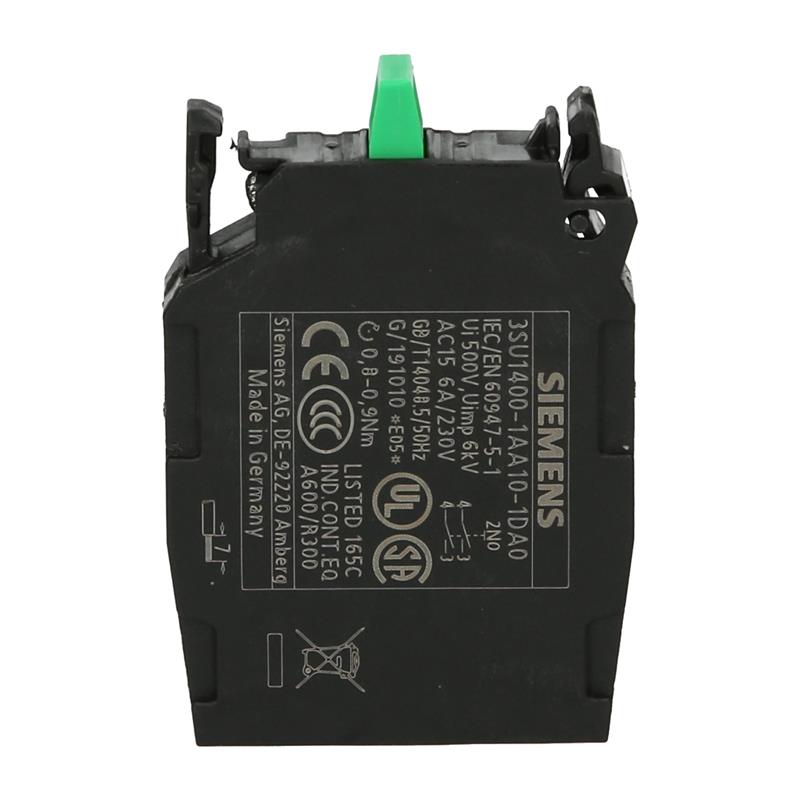 Siemens’in SIRIUS ACT serisinin ön montajına yönelik 3SU1400-1AA10-1DA0 kontak elemanı normalde açık bir kontağa sahiptir. Bağlantı vidalı terminaller aracılığıyla yapılır.