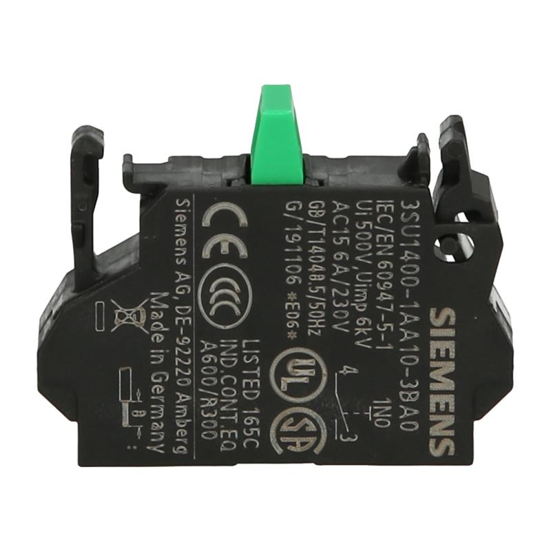 Siemens’in SIRIUS ACT serisinin ön montajına yönelik 3SU1400-1AA10-3BA0 kontak elemanı normalde açık bir kontağa sahiptir. Bağlantı kafes kelepçe terminalleri aracılığıyla yapılır.