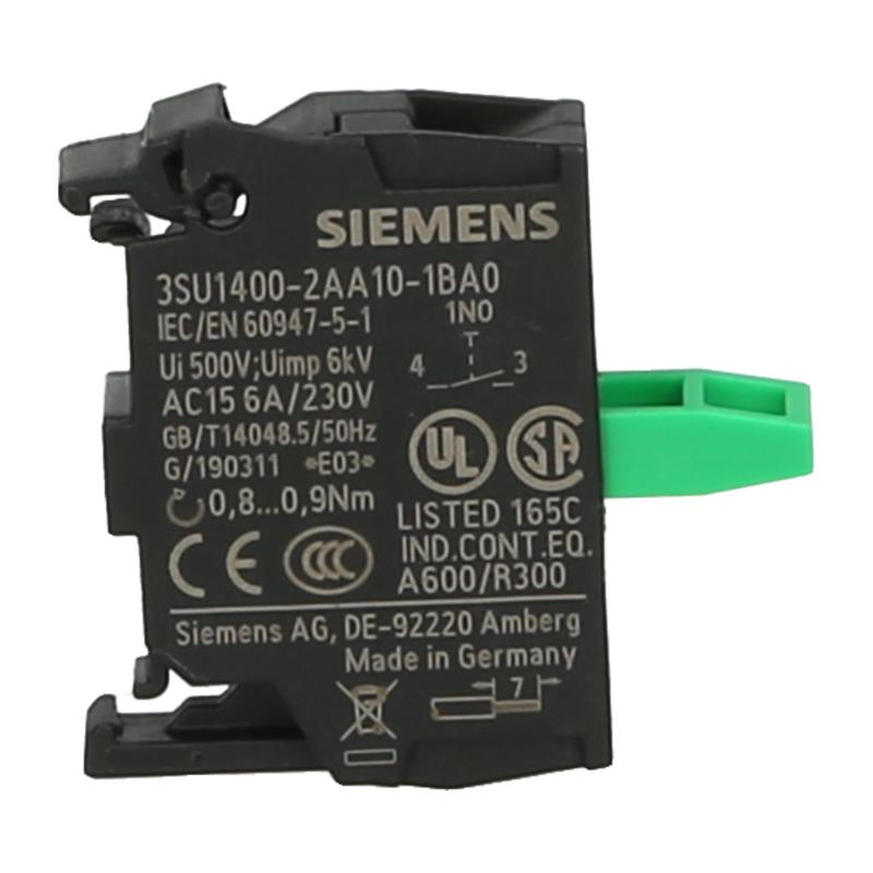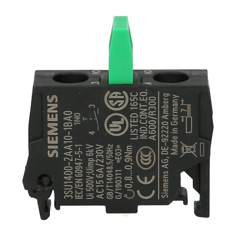 Siemens’in SIRIUS ACT serisinin zemine montajına yönelik 3SU1400-2AA10-1BA0 kontak elemanı normalde açık bir kontağa sahiptir. Bağlantı vidalı terminaller aracılığıyla yapılır.