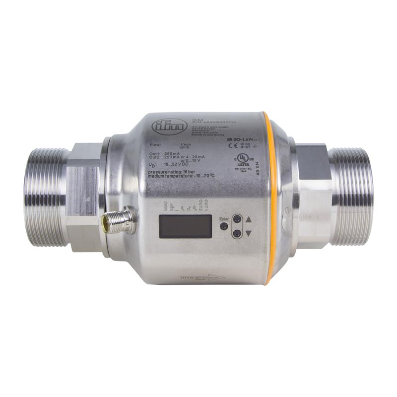 ifm’nin 5-600 l/dak ölçüm aralığına ve toplayıcı işlevine sahip SM2000 manyetik-endüktif akış ölçeri, yüksek doğruluk, tekrarlanabilirlik ve ölçüm dinamiği sağlar. Sinyal işleme için iki farklı çıkış vardır: OUT = akış izleme (ikili), miktar ölçer (darbeler), ön ayarlı sayaç (ikili) ve OUT2 = akış veya sıcaklık izleme (analog veya ikili). Düz contalı proses bağlantısı G2, M12 konektörü ve butonlar aracılığıyla esnek programlama sayesinde SM2000 manyetik endüktif akış ölçer, ilgili uygulamaya uyarlanabilir. SM2000 manyetik-endüktif akış ölçer, örneğin kaynak ekipmanındaki soğutucular gibi iletken ortamların akış hızı ölçümü için kullanılır.