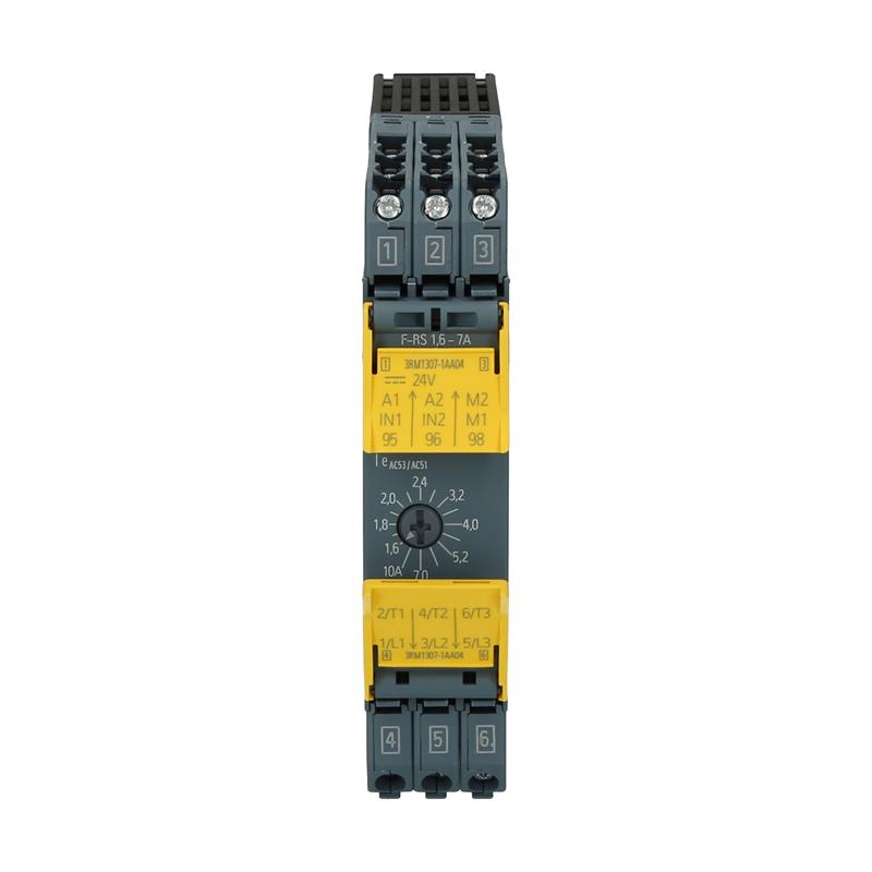 Siemens’in SIRIUS SIRIUS 3RM1307-1AA04 arıza emniyetli motor yol vericisi, ISO13849-1 PL e Kategori 4 uyarınca güvenlik gereksinimlerini karşılar ve 22,5 mm’lik dar yapı genişliği sayesinde kendini diğerlerinden ayırır; şalter kabininde gerekli alan. 1,6-7 A ayar aralığına ve 24 V DC kontrol voltajına sahip ters yol verici, güvenlik gereksinimleri olan sistemler ve 3 kW’a kadar güce sahip motorlar için en uygun çözümdür. SIRIUS 3RM1307-1AA04 vidalı terminaller aracılığıyla bağlanır ve DIN 35 rayına monte edilebilir.