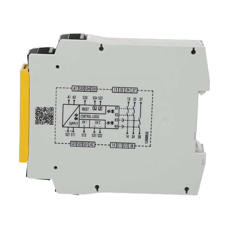 Wieland’ın R1.188.0640.0 – SNV4063KL-A 30S DC 24V (A) zaman gecikmeli emniyet rölesi, elektrikli kilitleme cihazlarının izlenmesi. Temel modülde, 1,5 ila 30 saniyelik bir zaman gecikmesiyle akım yollarını etkinleştiren iki açık kontağı ve akım yolunu etkinleştiren bir açık kontağı bulunur ve tek bir kanal veya iki kanal üzerinden kontrol edilebilir. Zaman gecikmeli kapatma teması yalnızca PLd’ye kadar olan uygulamalar için onaylanır. Üç yeşil LED’li işlevsel bir ekran, çapraz kablo izleme ve Sıfırlama düğmesi izlemeyle otomatik Sıfırlama sunar. 24 V DC besleme gerilimine sahip R1.188.0640.0 – SNV4063KL-A 30S DC 24V (A) zaman gecikmeli emniyet rölesi, geçmeli vidalı terminaller aracılığıyla bağlanır ve bir DIN35 rayına monte edilebilir.