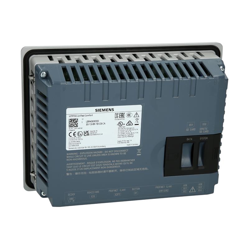 SIMATIC HMI MTP700 Birleşik Konfor Paneli – 6AV2128-3GB06-0AX1, 16 milyon renkli 7″ Geniş Ekran TFT ekrana sahiptir ve dokunmatik ekran aracılığıyla çalıştırılabilir. PROFINET arayüzü kontrol sistemi ile iletişim için kullanılır. SIMATIC HMI MTP700 – 6AV2128-3GB06-0AX1 paneli WinCC Unified Comfort V16’dan yansıtılabilir. Birlikte verilen DVD, açık Kaynak SW içerir.