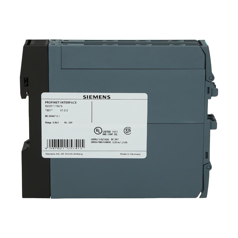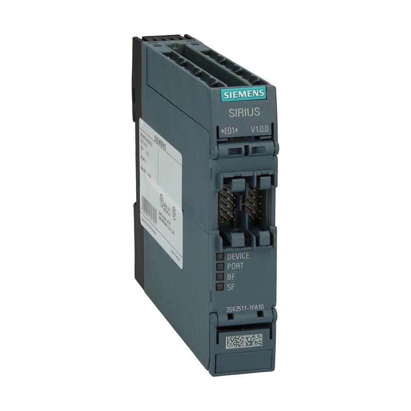 Siemens’in SIRIUS 3SK2511-1FA10 arayüz modülü, 3SK2 temel cihazı için PROFINET iletişimini sağlar. 24 V DC besleme gerilimine sahip arayüz modülü vidalı terminaller aracılığıyla bağlanır ve bir DIN rayına monte edilebilir. 3SK2511-1FA10, düz şeritli bağlantı kablosuyla 3SK2 ana cihazına bağlanır.