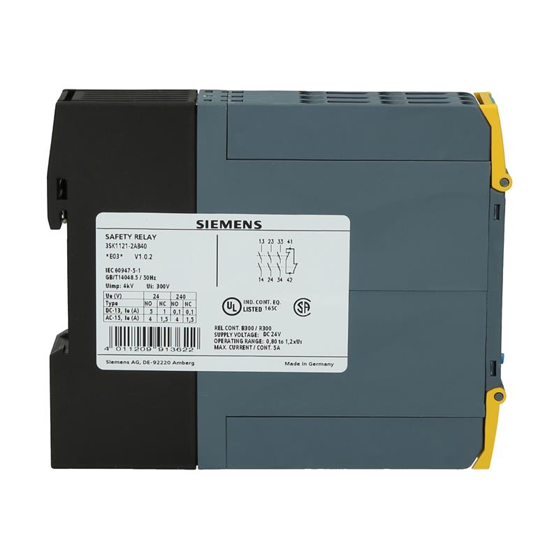 Siemens’in güvenlik rölesi SIRIUS Advanced 3SK1121-2AB40, güvenlikle ilgili devrelerin izlenmesi için kullanılır. Temel cihazda, akım yollarını etkinleştiren üç NO kontağının yanı sıra bir yardımcı kontak bulunur ve bir veya iki kanal üzerinden kontrol edilebilir. Bir fonksiyon ekranı sunar ve çapraz devrelere karşı dayanıklıdır. 24 V DC besleme gerilimine sahip SIRIUS Advanced 3SK1121-2AB40 emniyet rölesi, bastırmalı terminaller aracılığıyla bağlanır ve bir DIN35 rayına monte edilebilir.