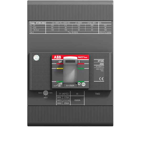 C.BREAKER TMAX XT3S 250 ÖN TERMİNALLER VE MANYETİK ÇIKARMA İLE ÜÇ kutuplu 250 SABİT MA Iu 160 A I3 = 960 … 1920 A